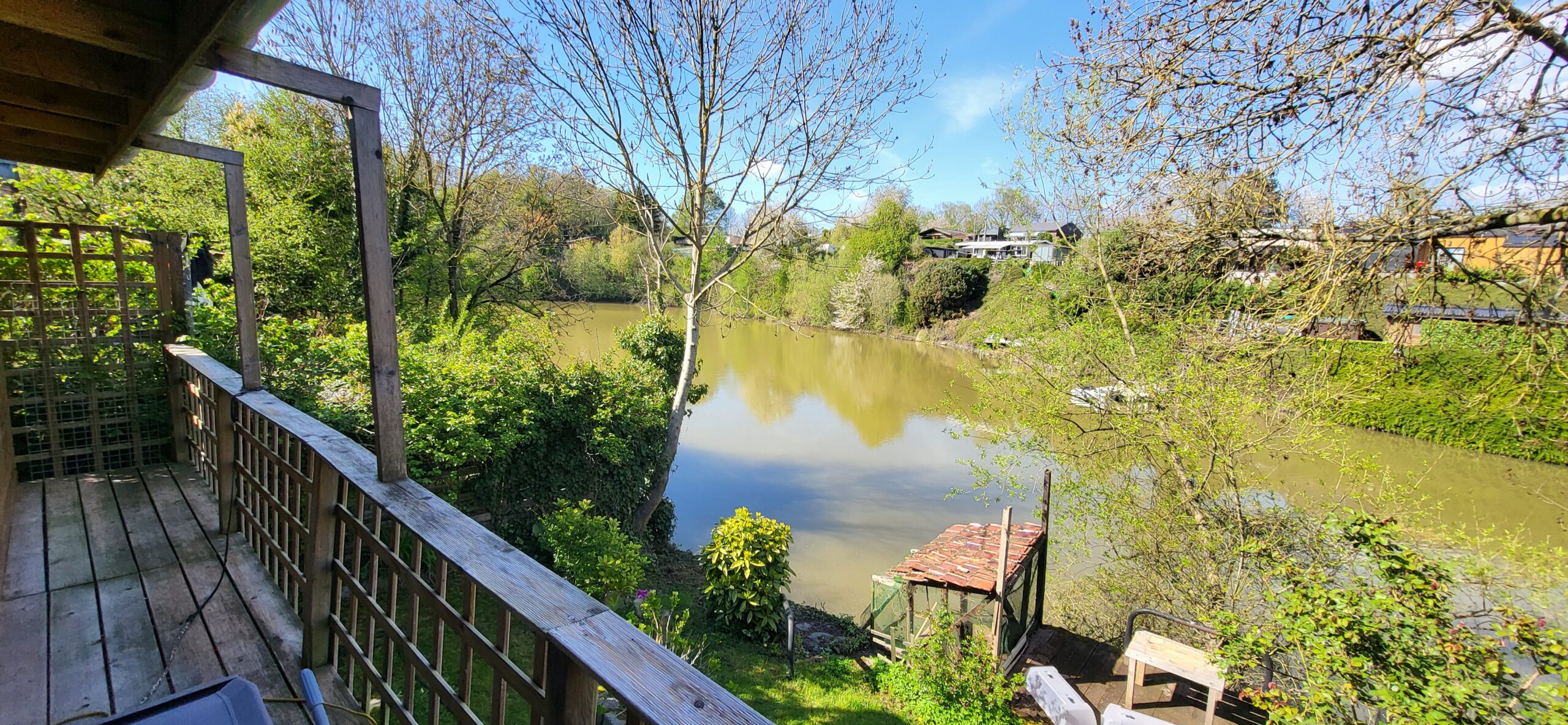 Dans le parc résidentiel du lac, dans un cadre arboré, chalet en bon état bénéficiant d’une très jolie vue sur le lac, il comprenant un salon & salle à manger, une cuisine équipée, 1 chambre, 1 bureau, une salle de bains, terrasse, coin barbecue, jardin donnant directement sur le lac, les pieds dans l'eau.