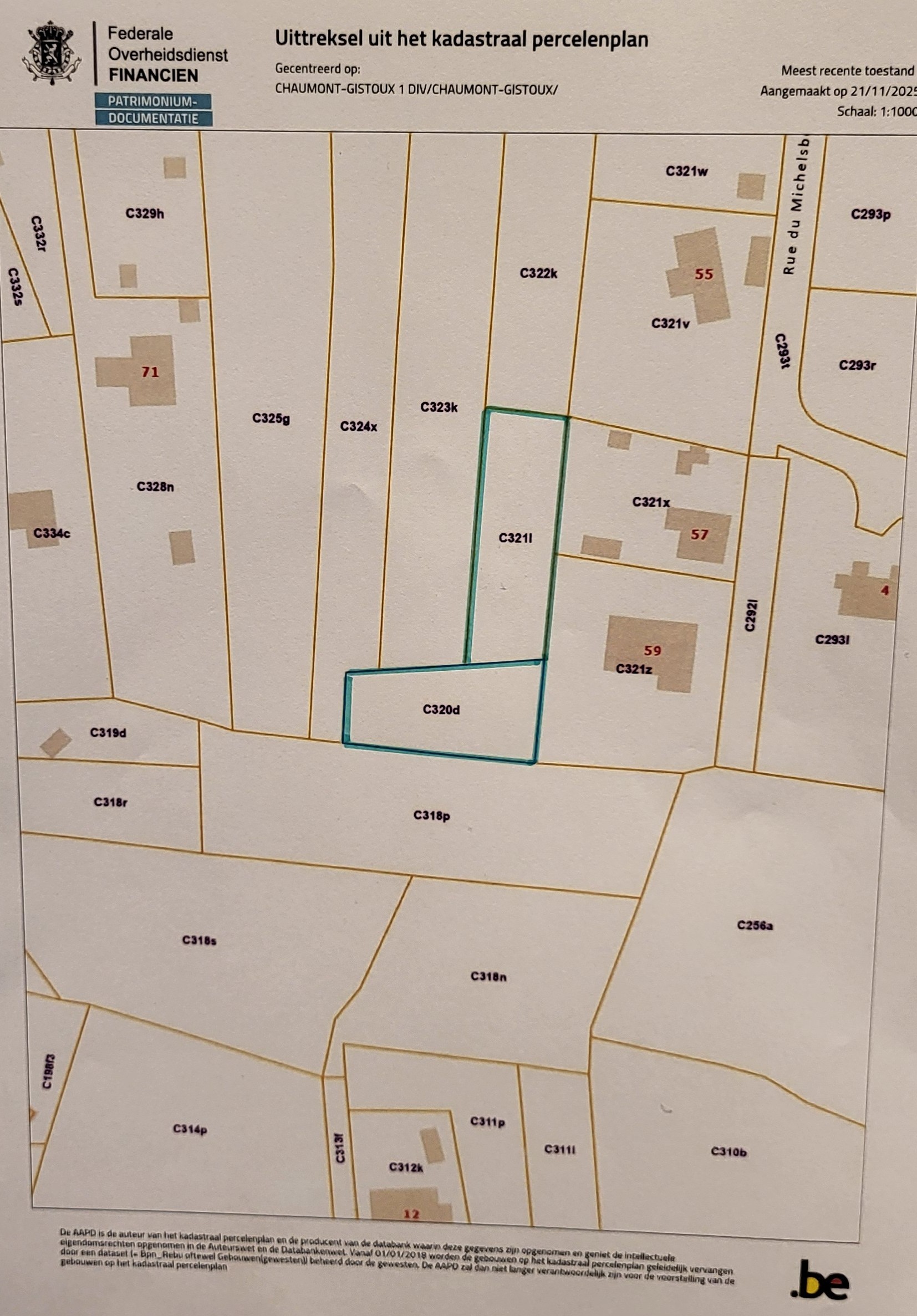 Au cœur d’un quartier prisé, à proximité de toutes les commodités, une parcelle de terre et de bois enclavée de ± 15 a, située rue des Bruyères, en zone d'habitat au plan de secteur, cadastrée suivant titre et suivant extrait de matrice cadastrale récent section C, numéros 320D P0000 et 321L P0000, pour une superficie suivant titre et cadastre de huit ares dix centiares (8a 10ca) pour la parcelle de terre et de six ares nonante centiares (6a 90ca) pour la parcelle de bois. Soit un total de 15 a.