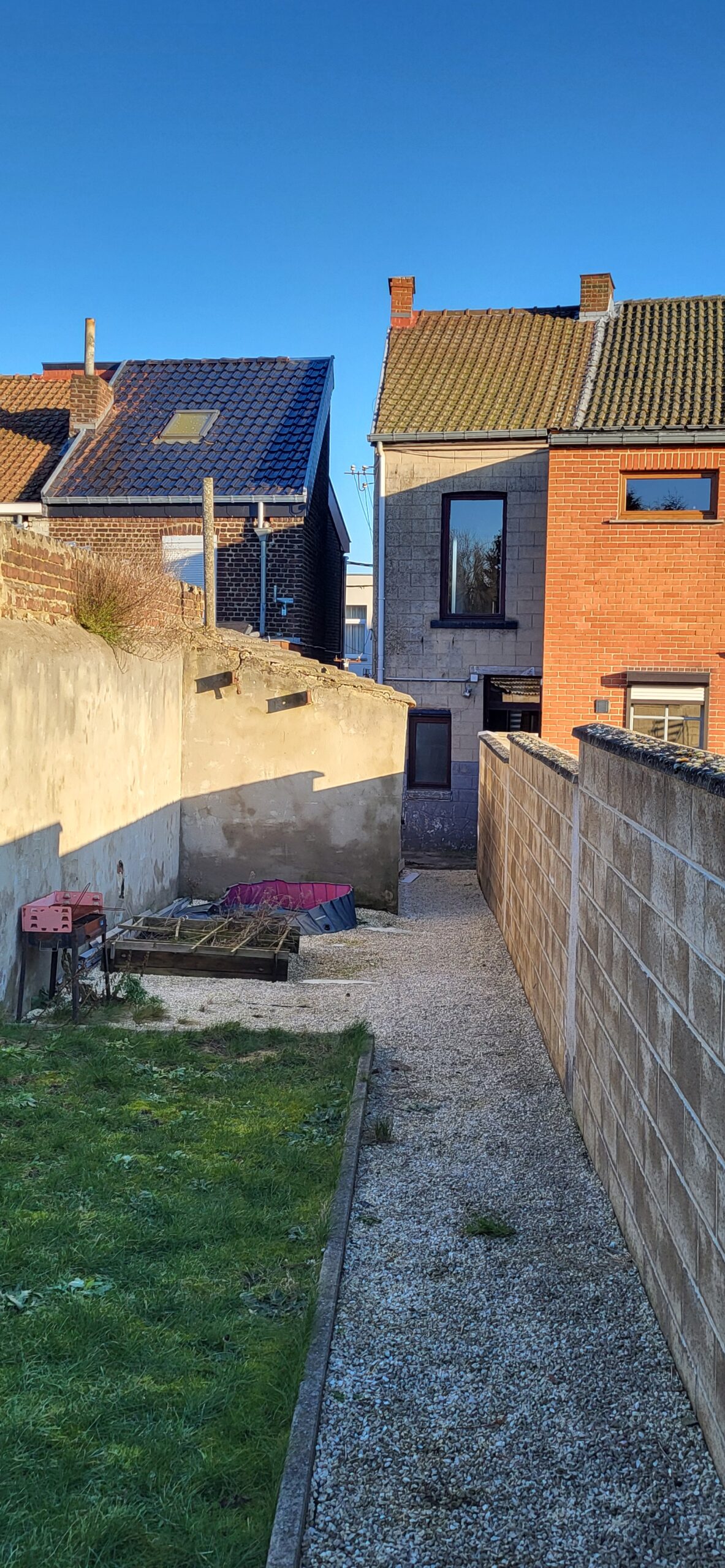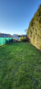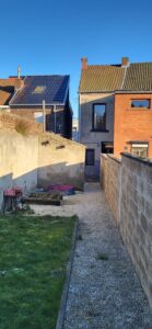 - Extérieur : passage latéral sur le côté, abri de jardin, jardin à l’arrière.