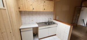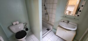 Au rez : séjour, pièce cuisine non équipée, une salle de douche, une mini cour.